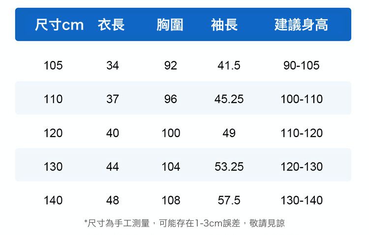 105cm、110cm、120cm、130cm、140cm