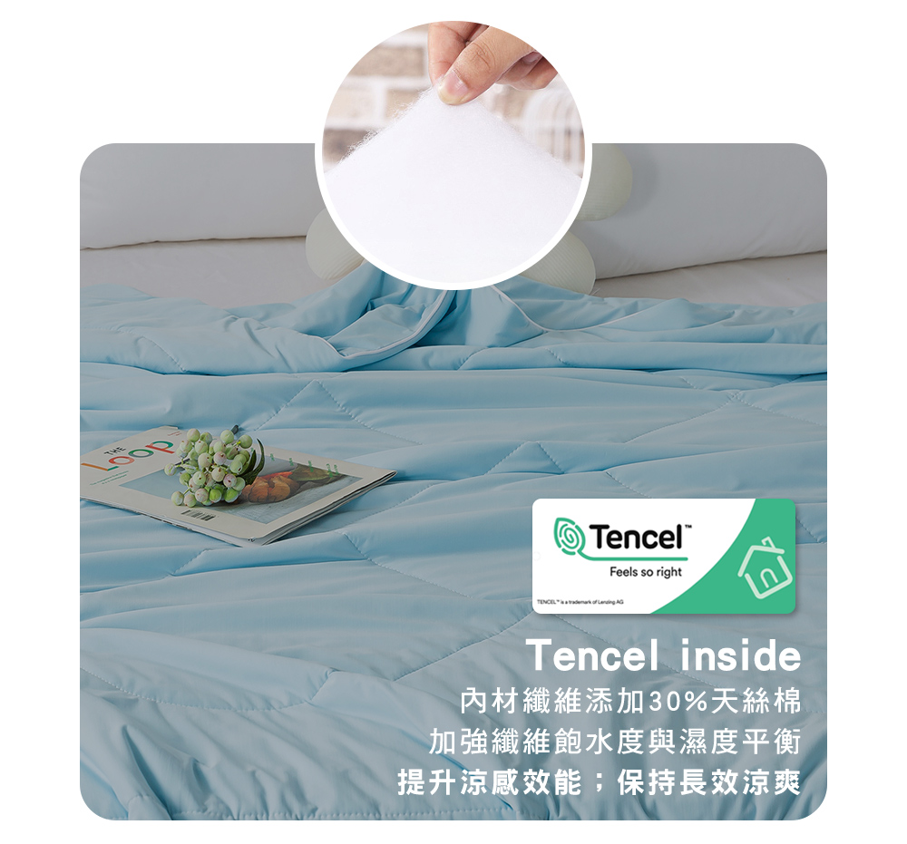 ◎材質:表布-涼感紗(87%錦綸+13%氨綸)/填充物-30%天絲棉+70%聚酯纖維