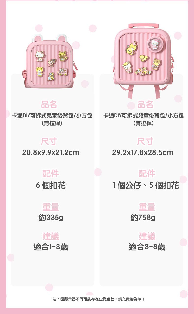 • 品名:卡通DIY可拆式兒童後背包/小方包(有拉桿)