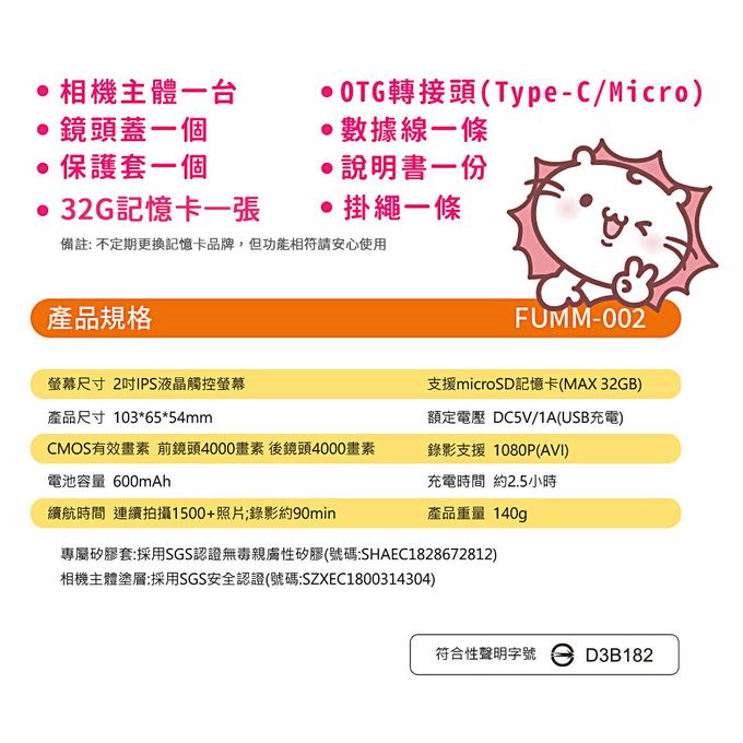 品名:麻吉貓2吋童趣數位相機(附贈32G記憶卡)