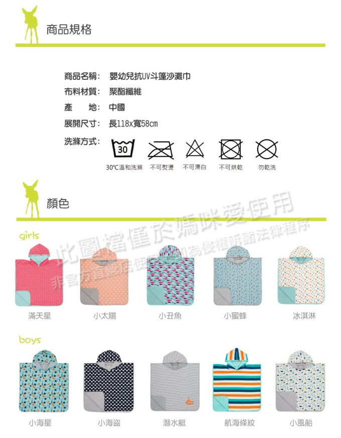 品名:嬰幼兒抗UV斗篷沙灘巾