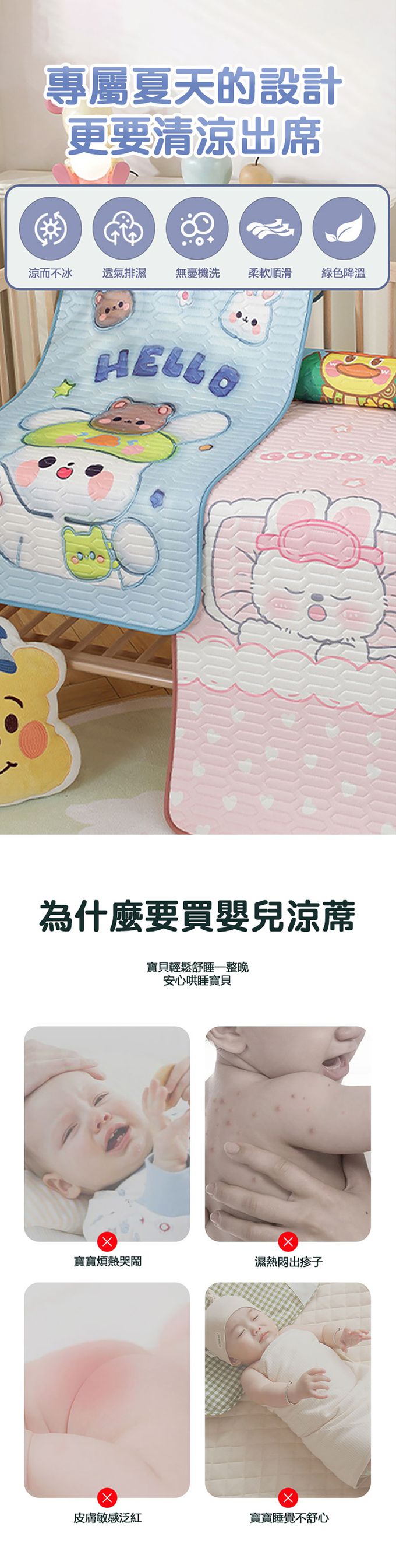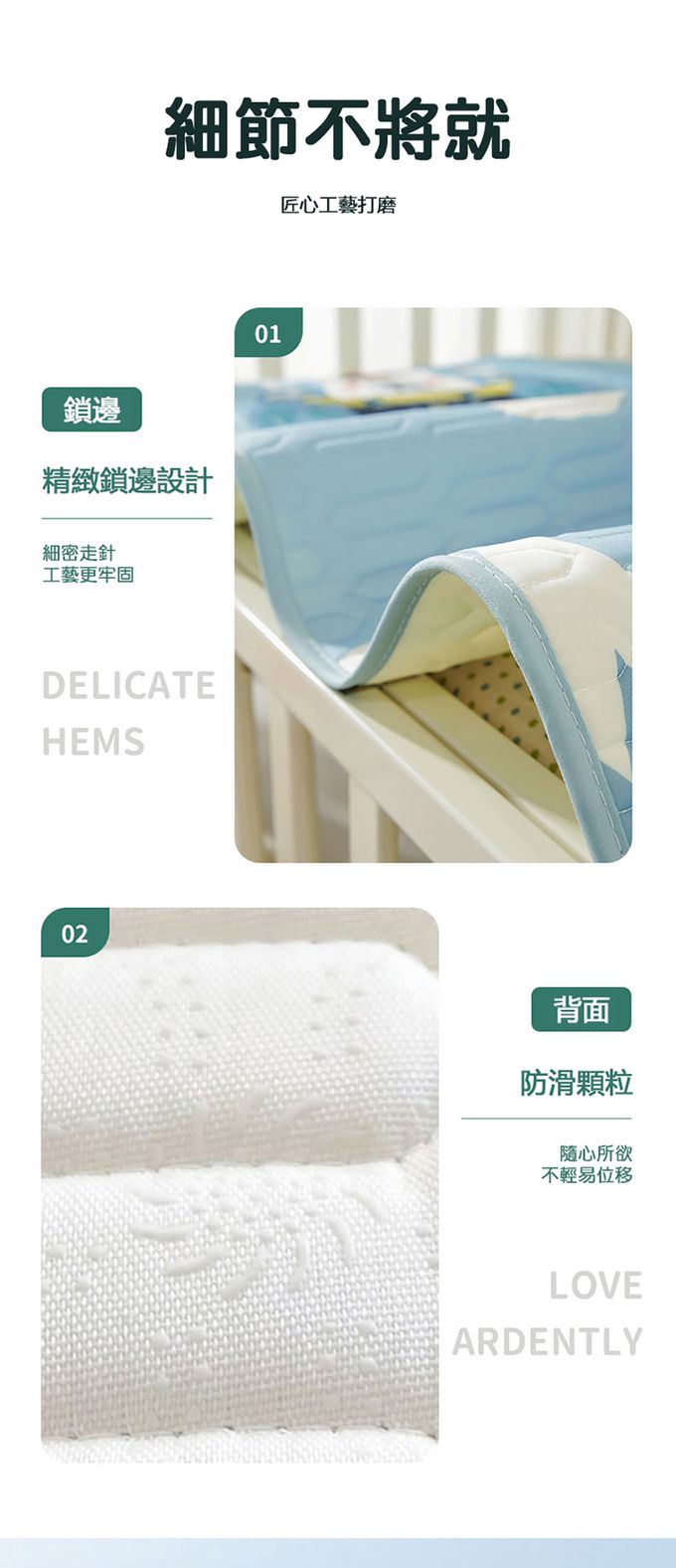 1.涼而不冰的涼感面料、讓寶寶整晚都能有深度的睡眠,遠離怕熱引起的溼疹問題