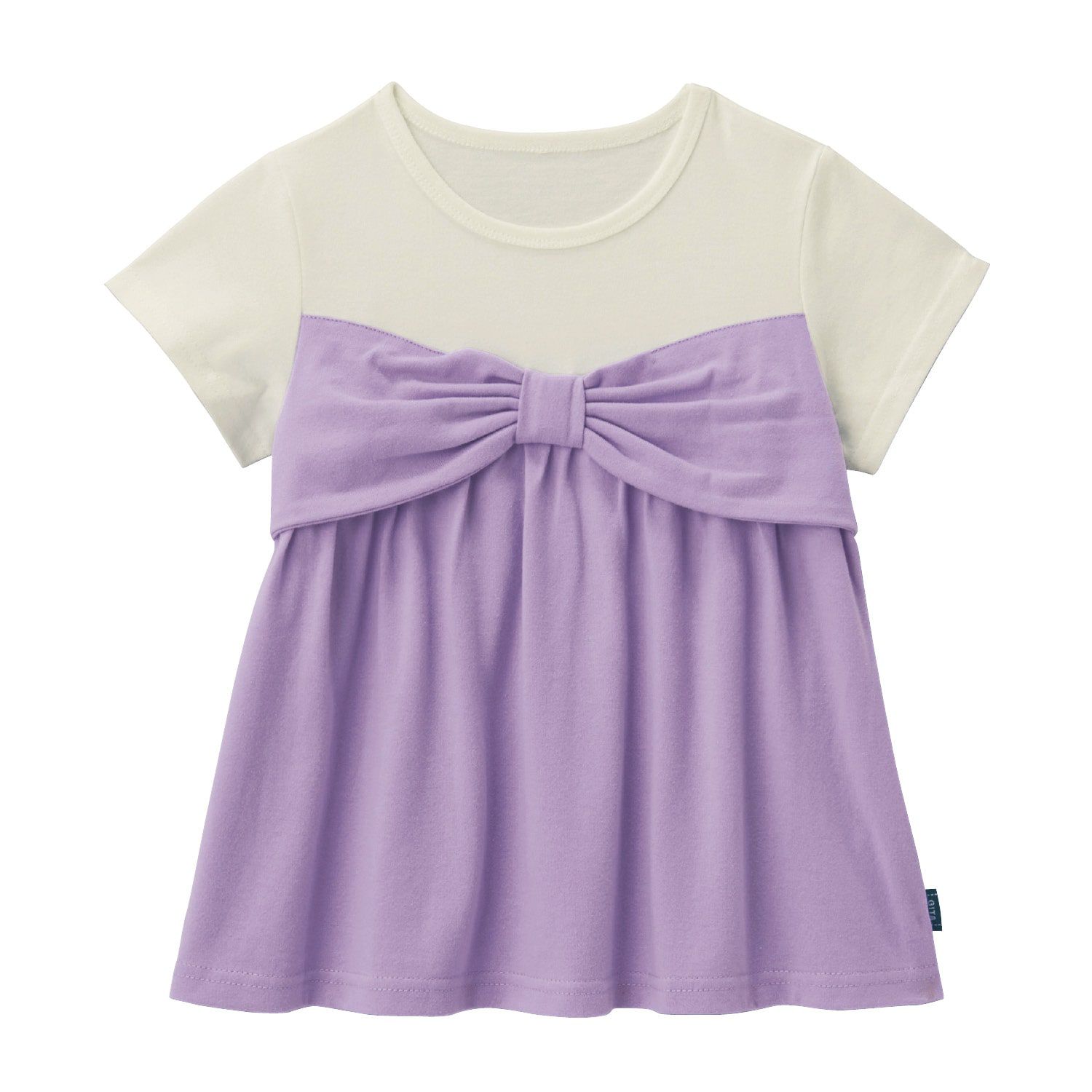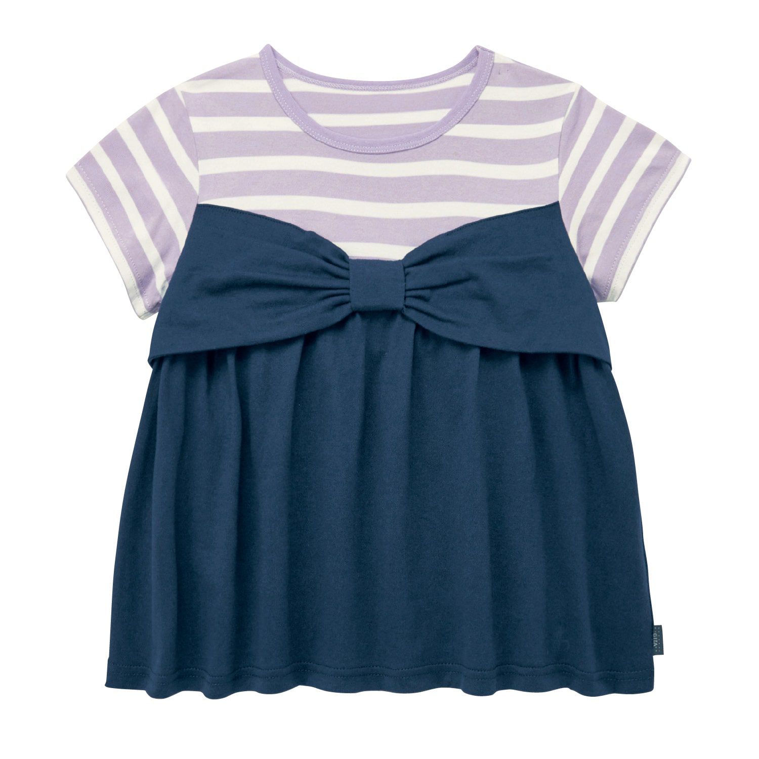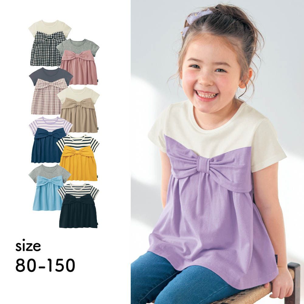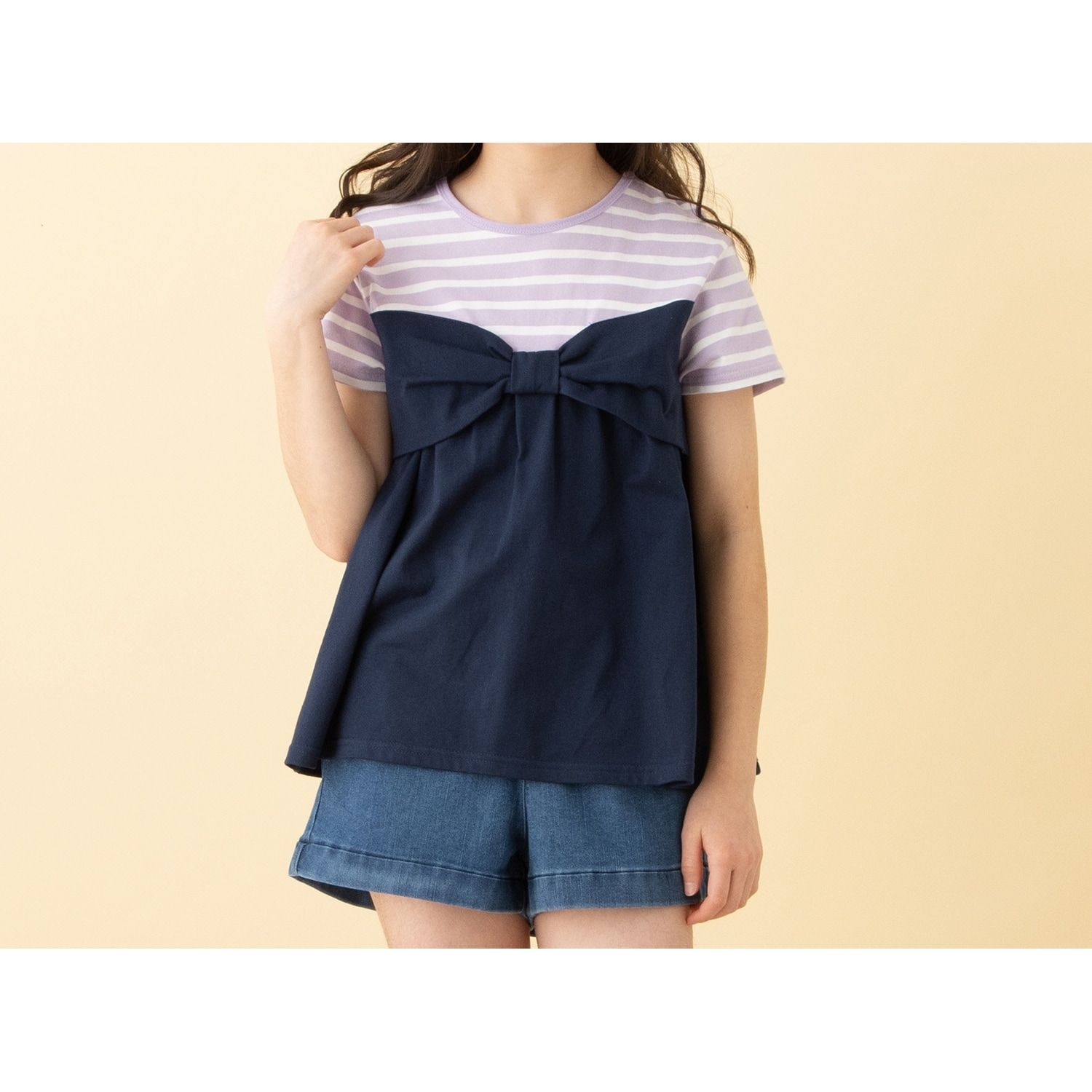 日本千趣會 - GITA 大蝴蝶結假二件短袖上衣-紫條紋x海軍藍