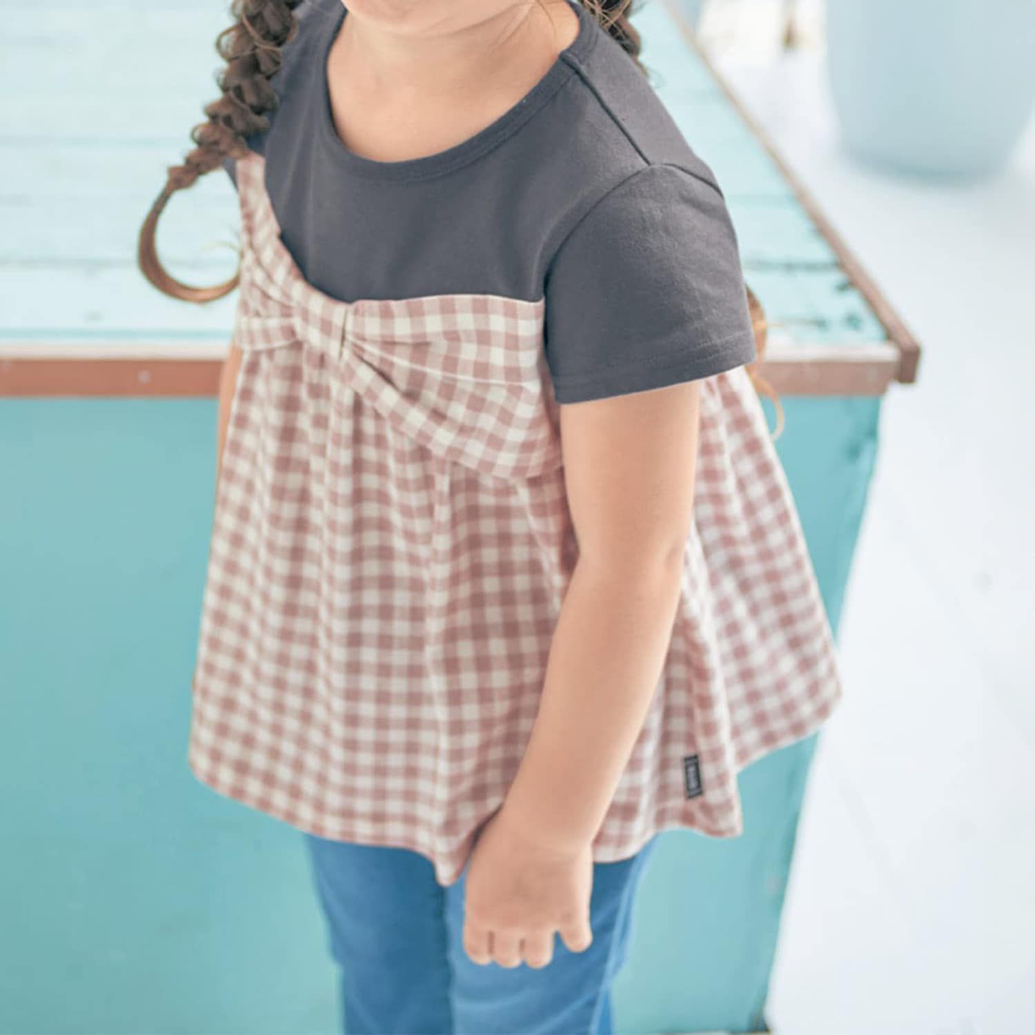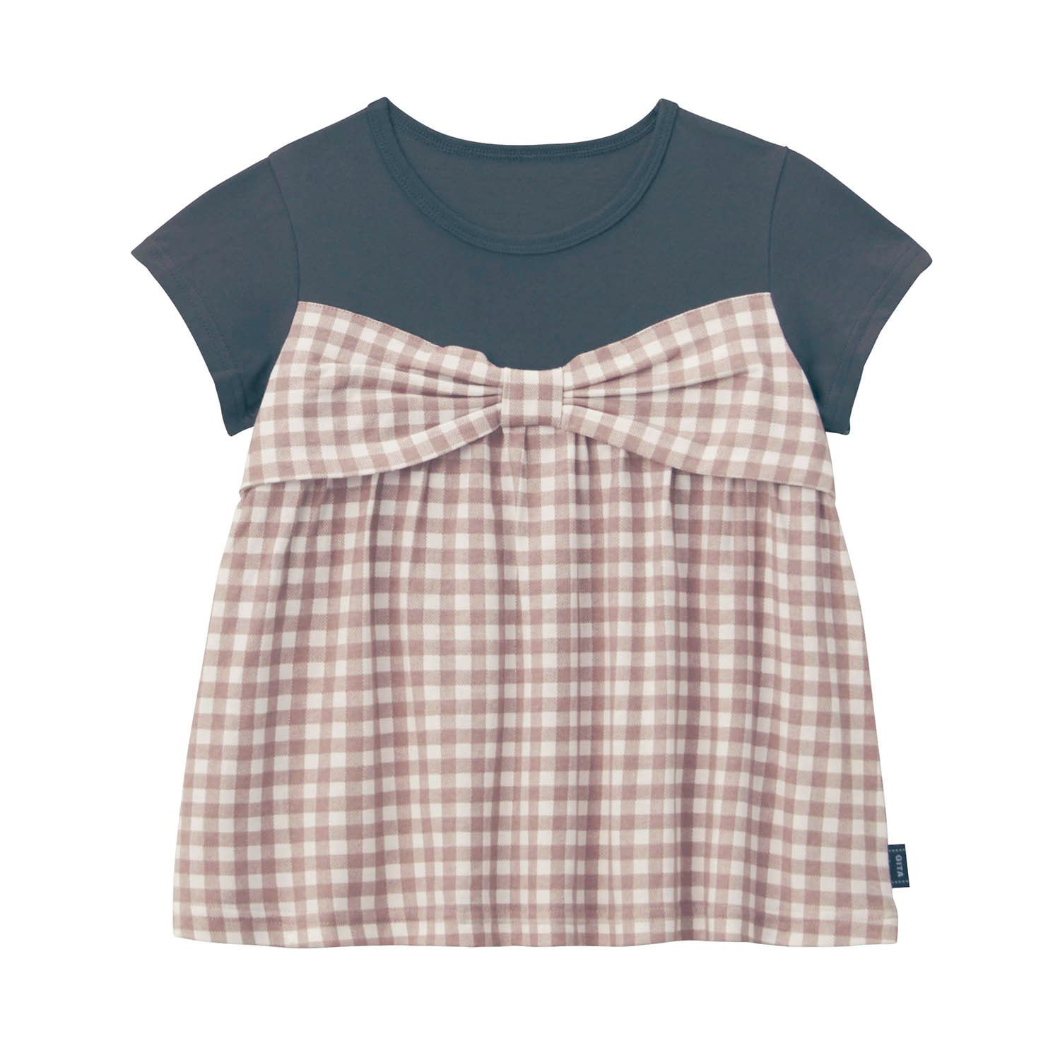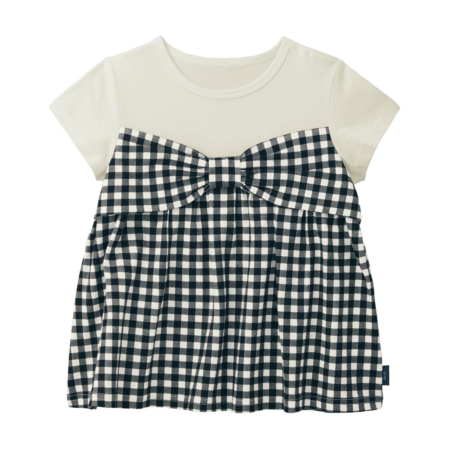 日本千趣會 - GITA 大蝴蝶結假二件短袖上衣-黑格紋