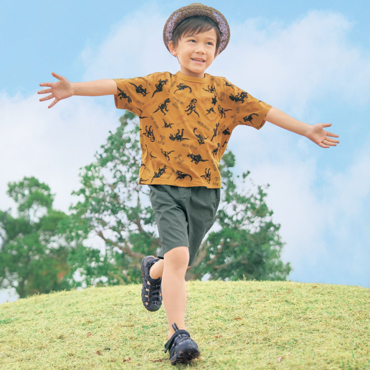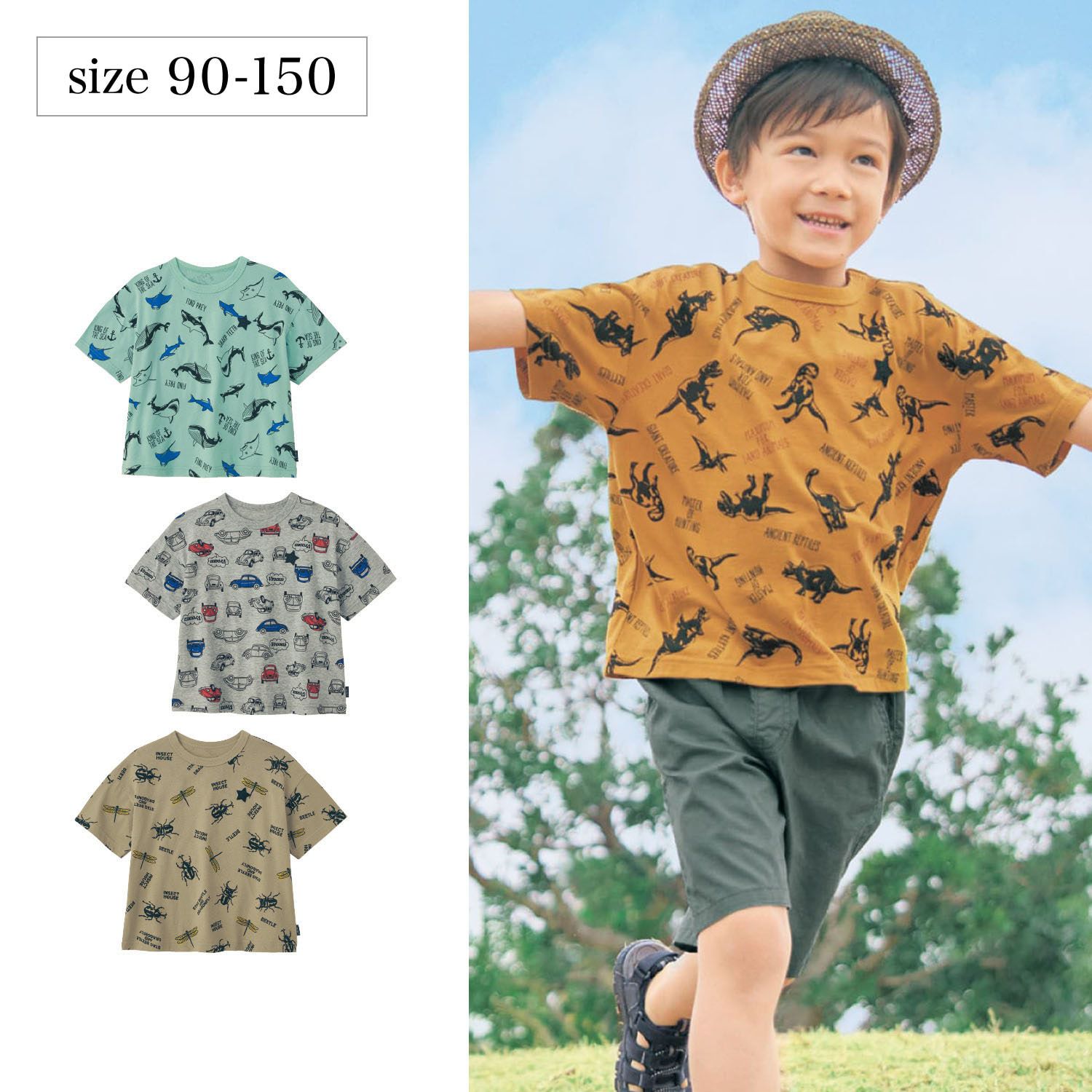 日本千趣會 - GITA 男孩最愛印花短袖上衣-恐龍-黃棕