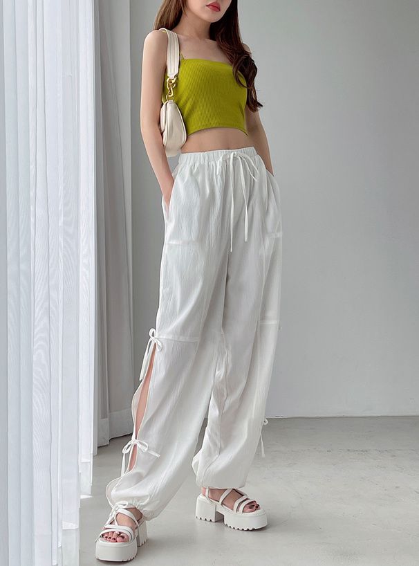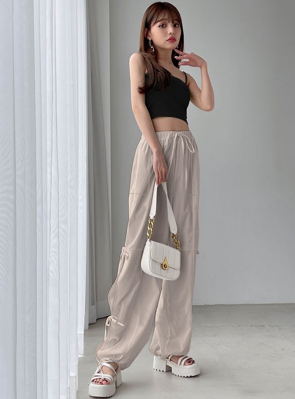 ![日本 GRL - 優雅抓皺泡泡布吊帶裙-米杏]()