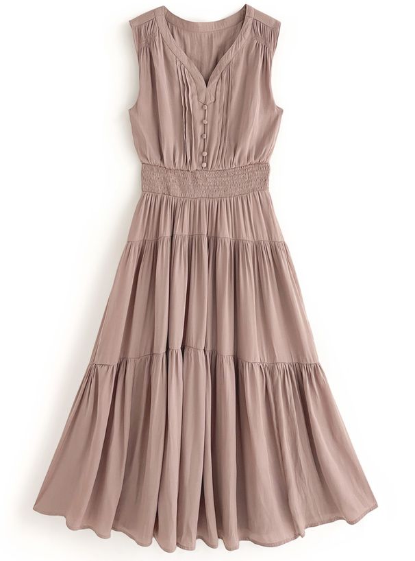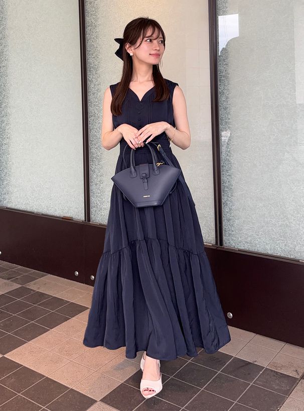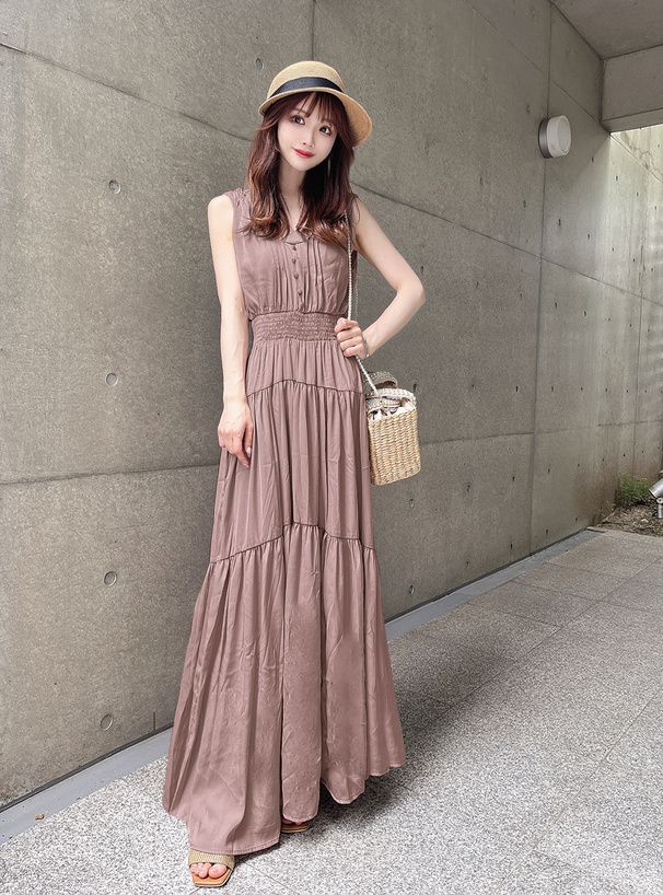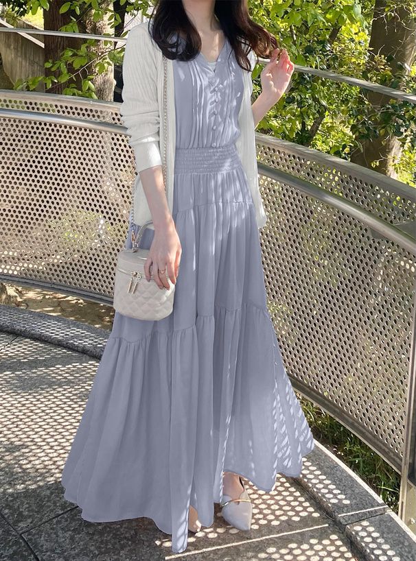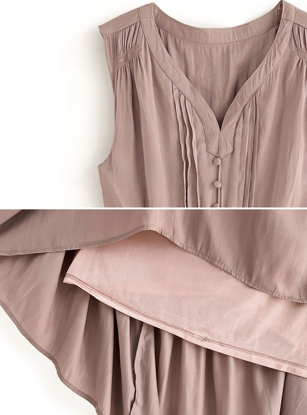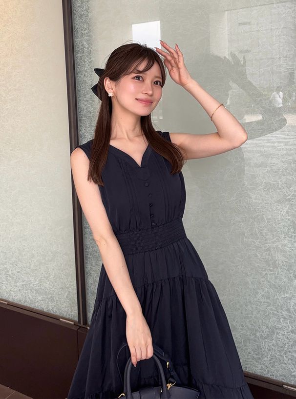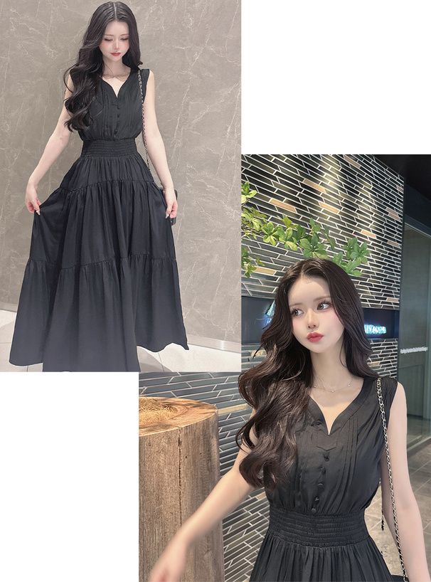 • 品名:小V領氣質層次收腰無袖洋裝