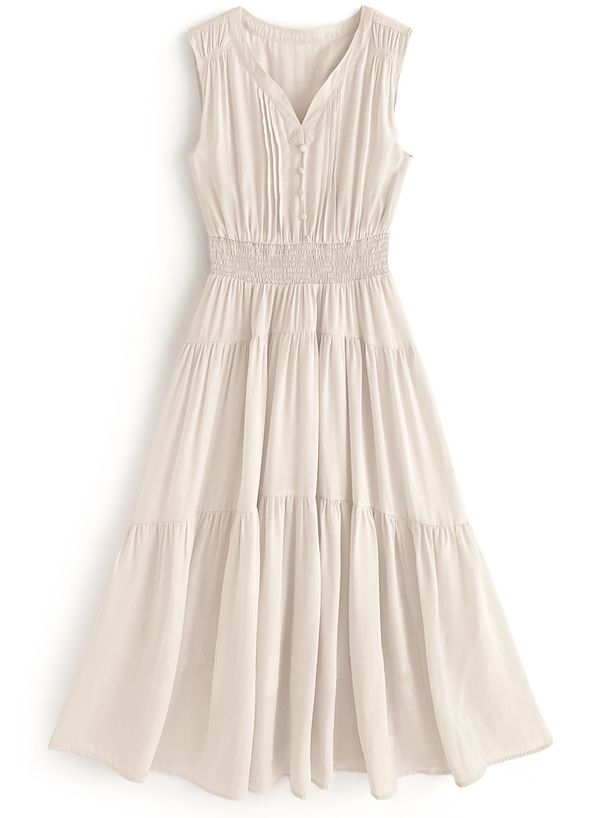 日本 GRL - 小V領氣質層次收腰無袖洋裝-象牙杏