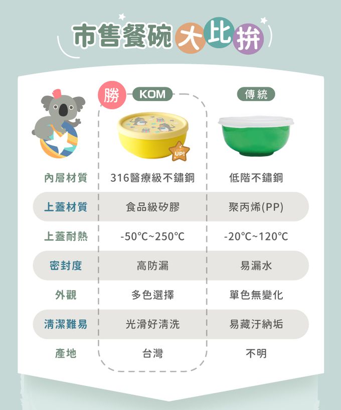 KOM - 台灣製316不鏽鋼兒童隔熱碗(附匙)(全新升級版)-企鵝-矽膠上蓋