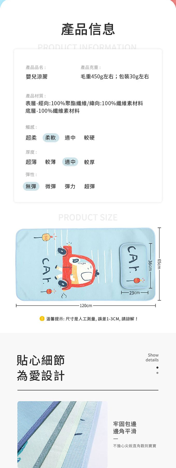 【商品尺寸】涼蓆120*65cm / 枕頭36*23 cm(±2公分內屬正常誤差值)