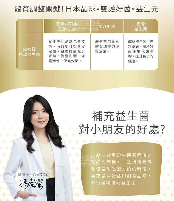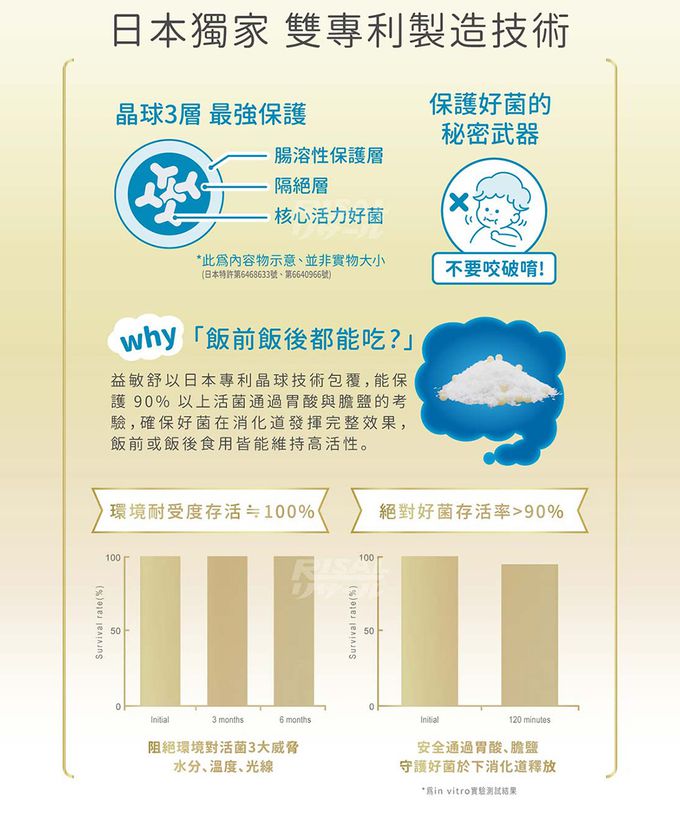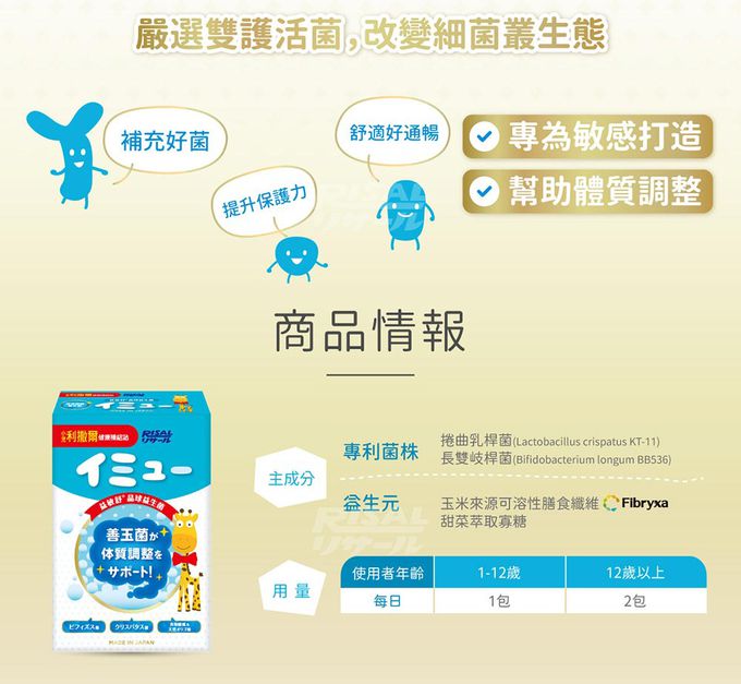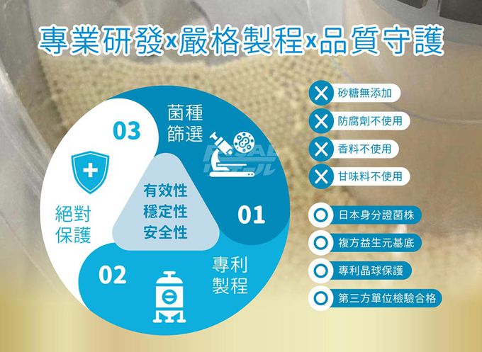 過敏原:本產品原料含有乳酸菌(牛奶來源)及大豆成分,對其過敏者注意。