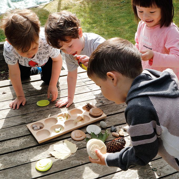 找一找、挖一挖,發現藏在沙子、泥土或樹葉堆中的叢林動植物化石,搭配各種自然素材,以及刷子、鏟子等小工具,立刻變身小小考古學家!