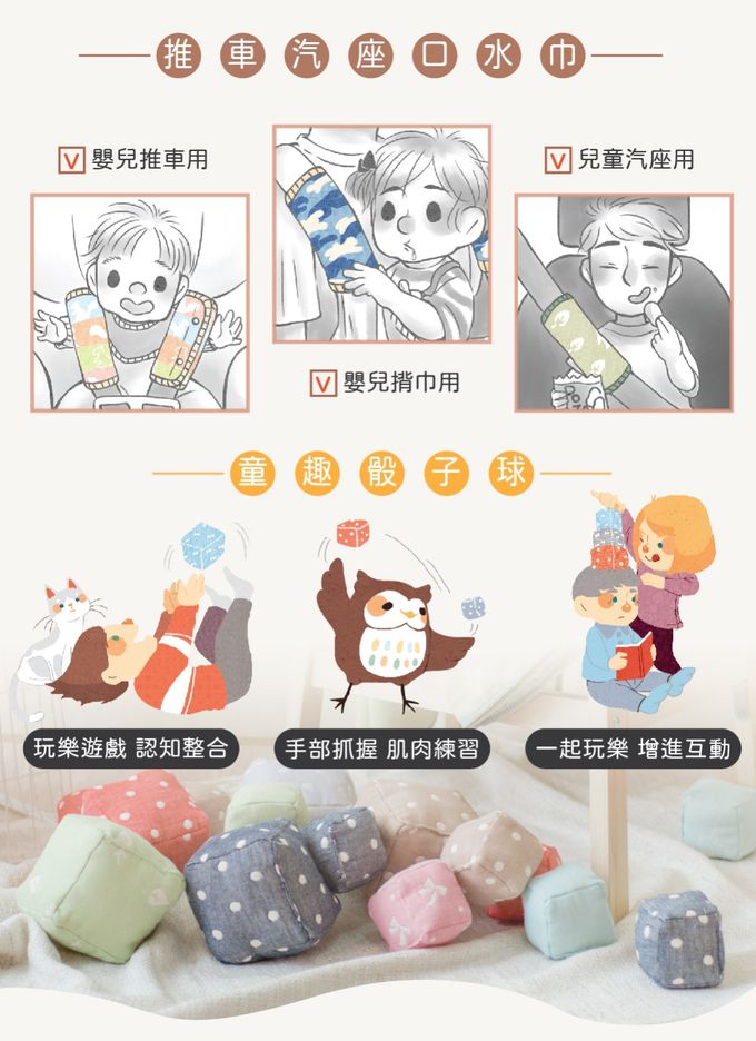 品名:【贈:嬰兒推車掛勾】乾爸乾媽送禮相見歡嬰兒彌月禮盒∥多功能連帽防風罩+背帶口水巾+印花領巾+骰子球
