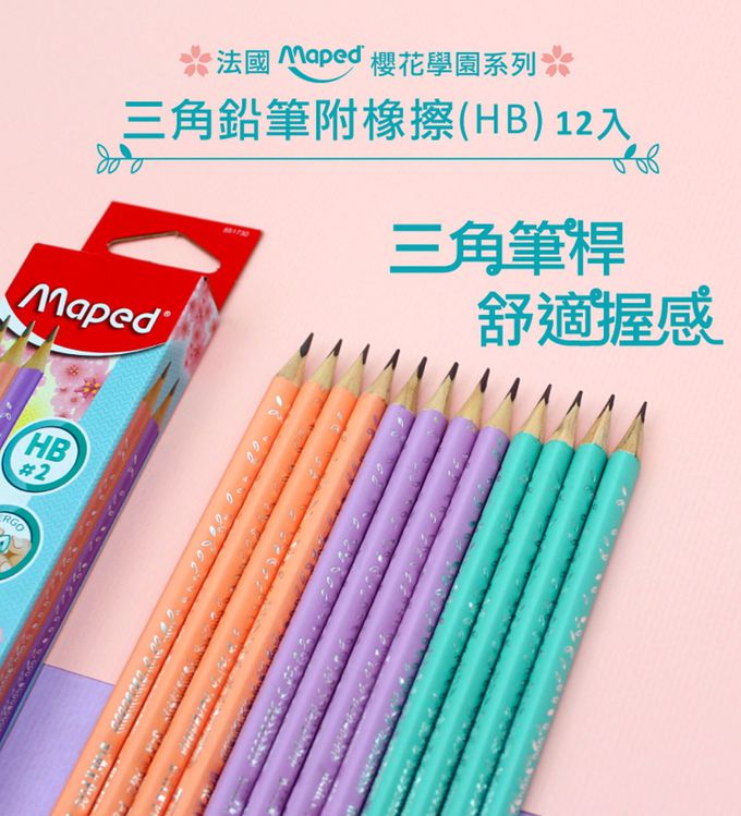 櫻花學園系列-三角鉛筆附橡擦-(HB-12入)-2組