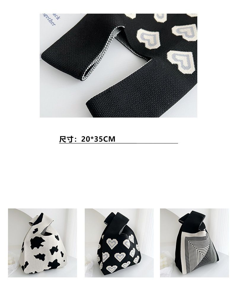 輕便休閒針織手拿包/手提包-表情包-黑+白 (20x35cm)