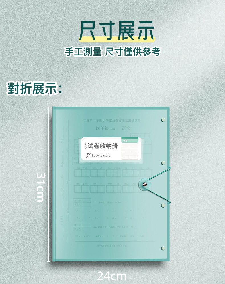 A3文件/考卷/獎狀收納資料夾-釦環顏色隨機-透明白-31x24cm