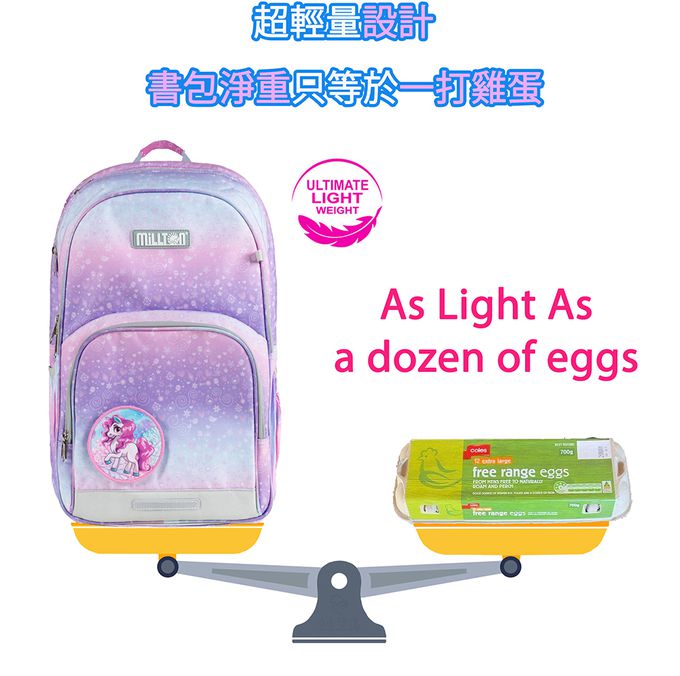 澳洲 Millton - 軍規雙軸護脊書包|粉紫小馬Lovely Pony|20L 700g