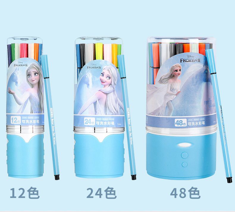 卡通可水洗兒童塗鴉彩色筆-卡通人物艾莎-藍色