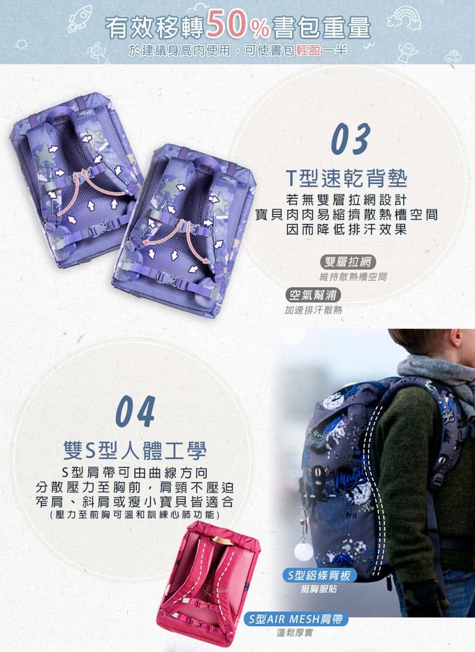 雙S型人體工學,移轉50%重量