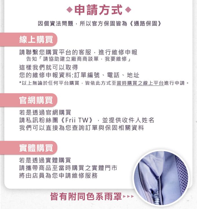 使用方式:雙肩背負,詳細使用方式洽Line:@frii詢問