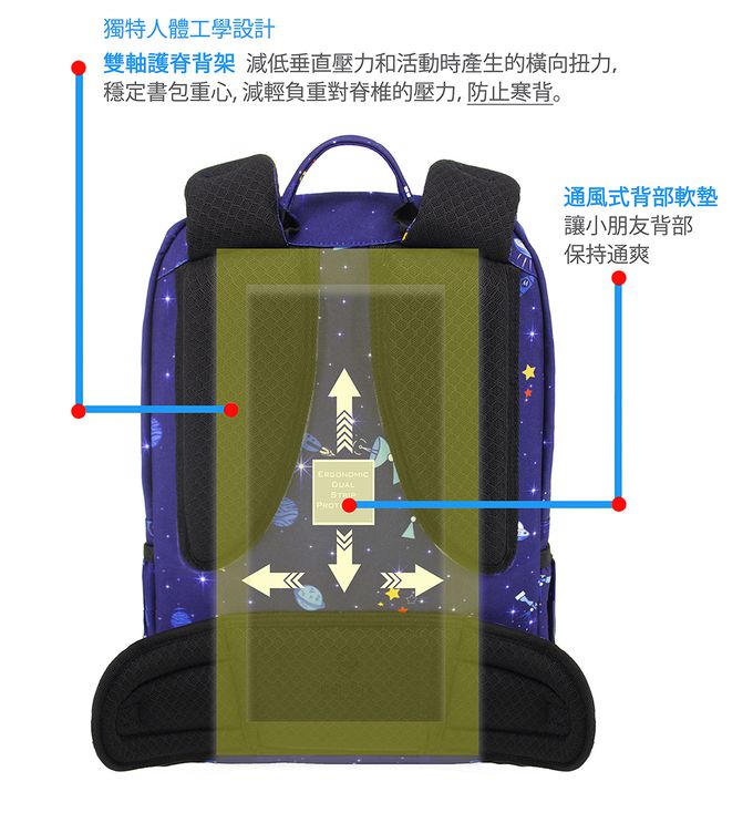 • 品名:軍規雙軸護脊書包|藍星探索Space Explorer|20L 700g
