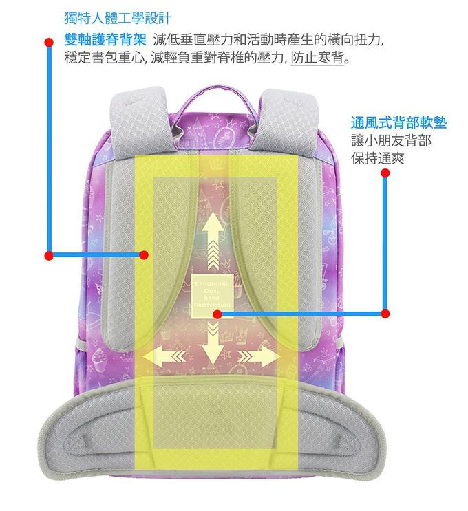 1. 雙軸護脊功能增強,書包穩定性,舒緩脊椎受壓