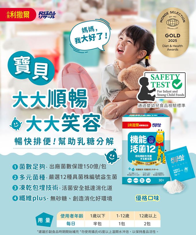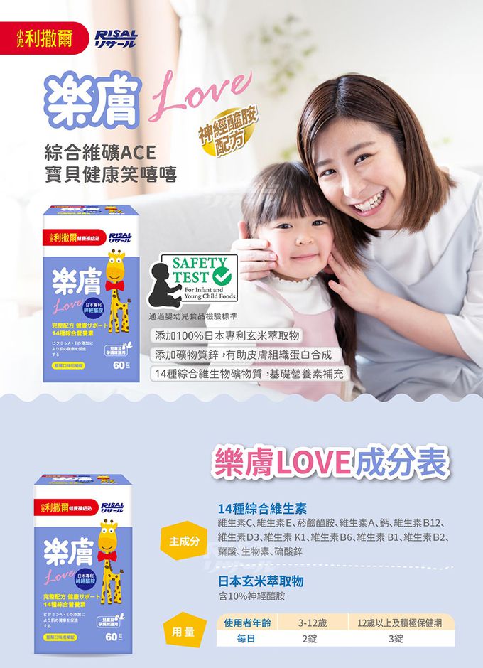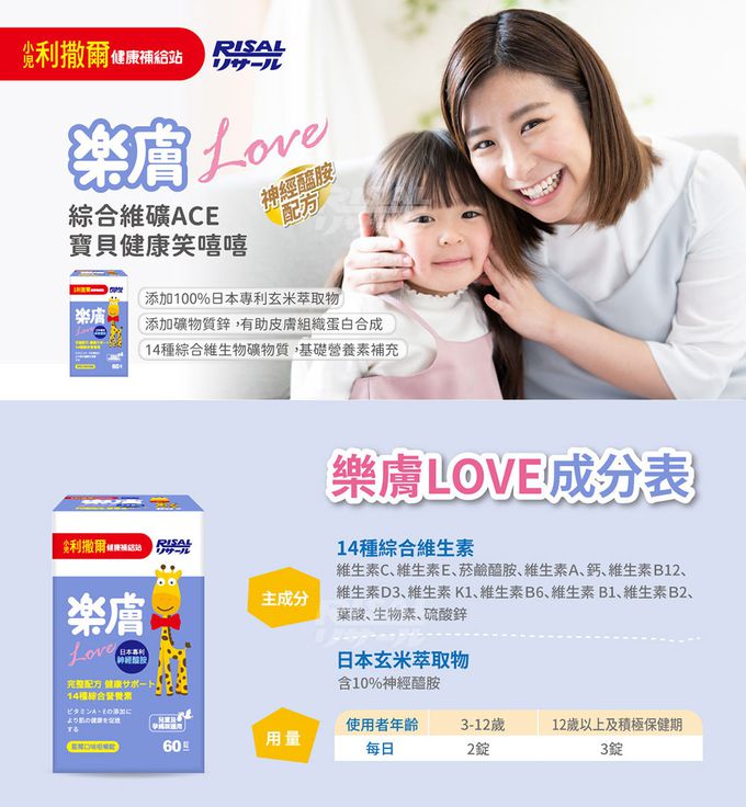 小兒利撒爾Risal - (開學獨家組)機能活菌12-30包/盒x2+樂膚Love咀嚼錠-60錠/瓶x1