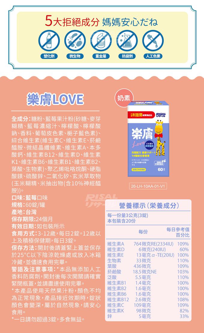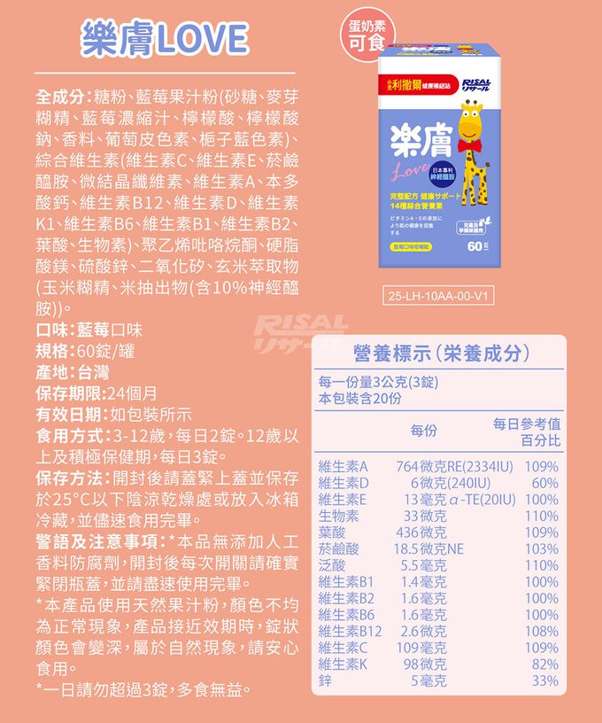 樂膚Love咀嚼錠▶14種綜合維生素礦物質