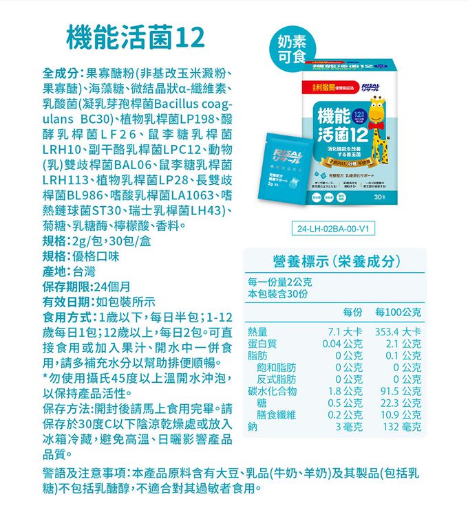 品名:機能活菌12-30包/盒 (無添加砂糖升級版)