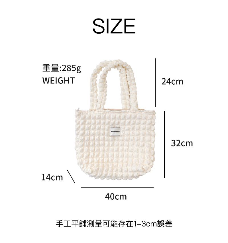 雲朵包澎潤感加上布料本身微微的皺褶感,遠遠看起來就像一顆顆爆米花那般小巧可愛,格子狀設計更顯得做工精巧美型!