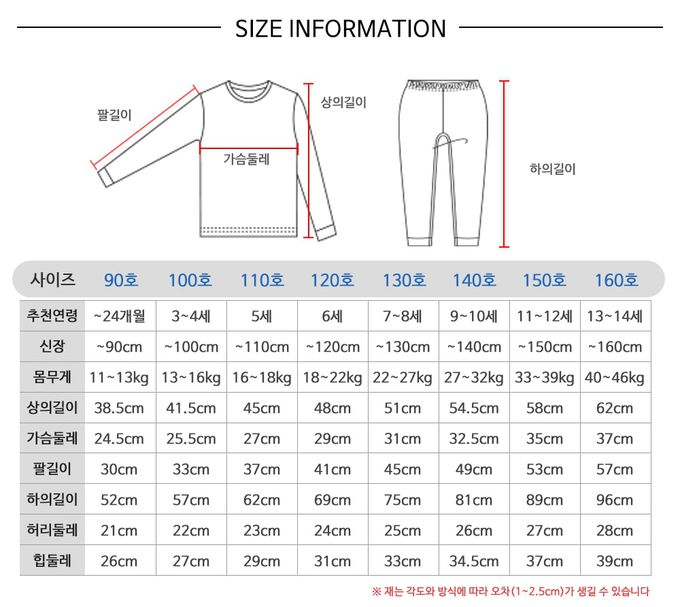 *尺寸表由上而下為:尺寸、建議年齡、身高、體重、衣長、胸寬、袖長、褲長、腰寬、臀寬