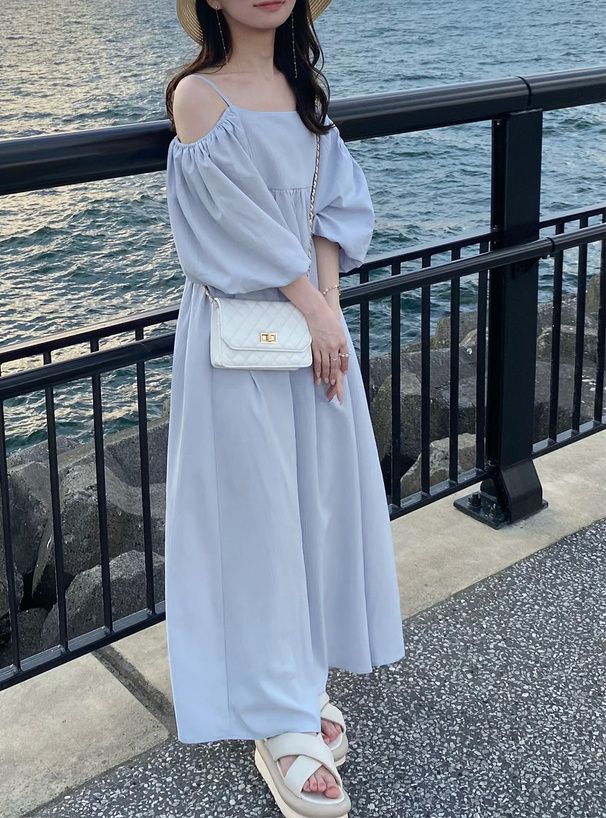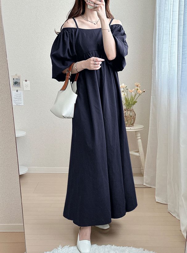 • 品名:2WAY浪漫露肩收腰泡泡袖洋裝