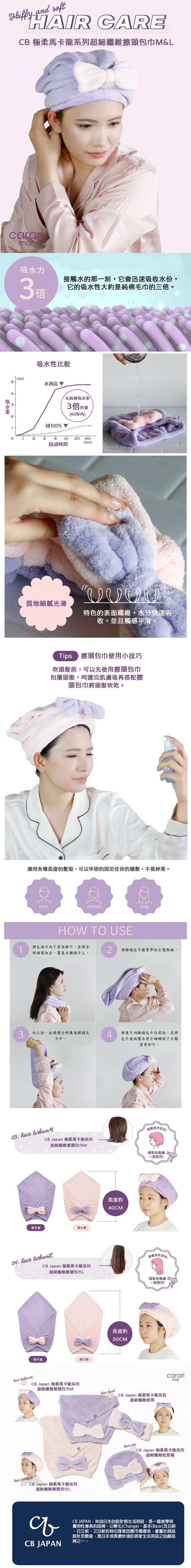日本 CB JAPAN - 極柔馬卡龍系列超細纖維擦頭包巾M-香芋紫