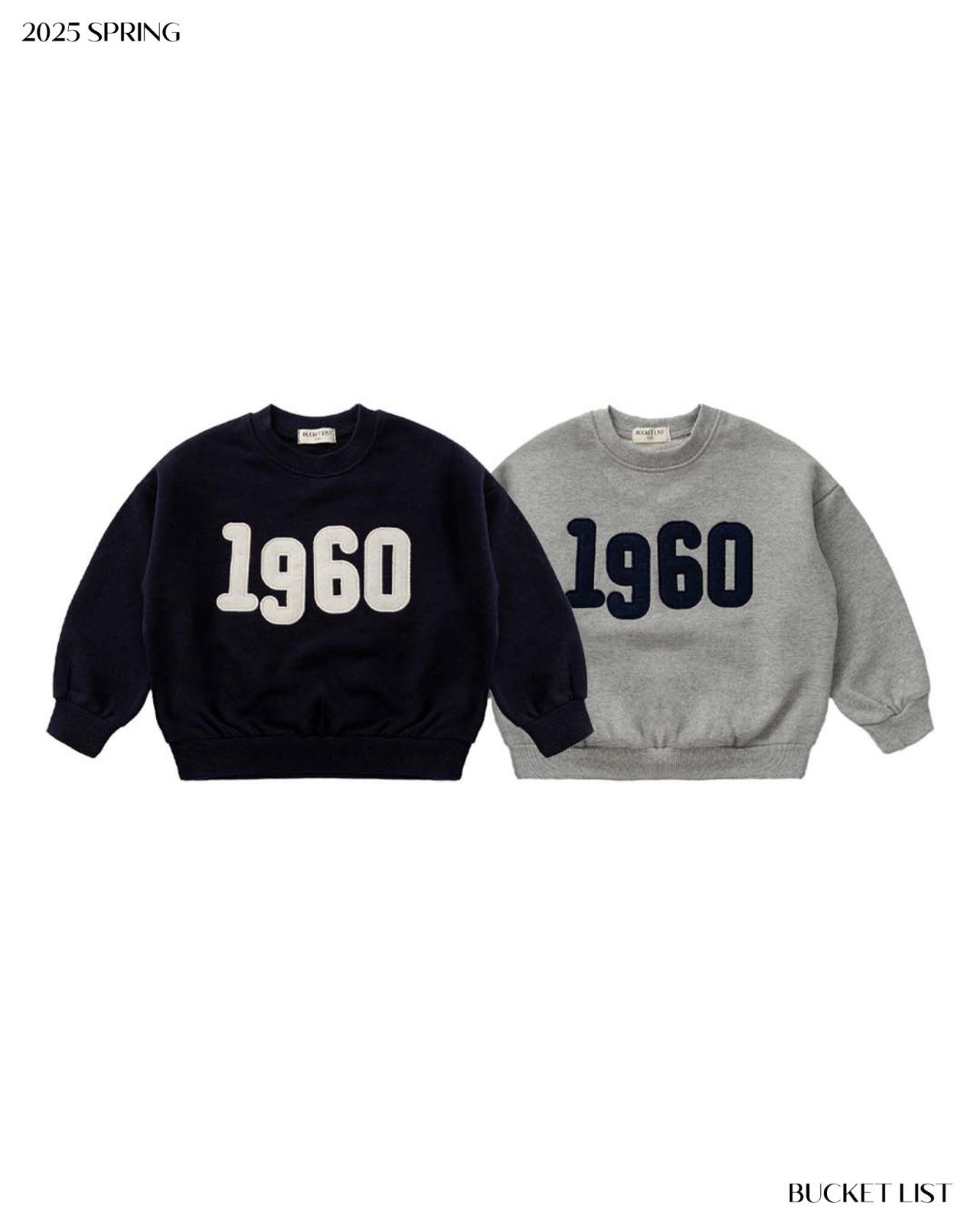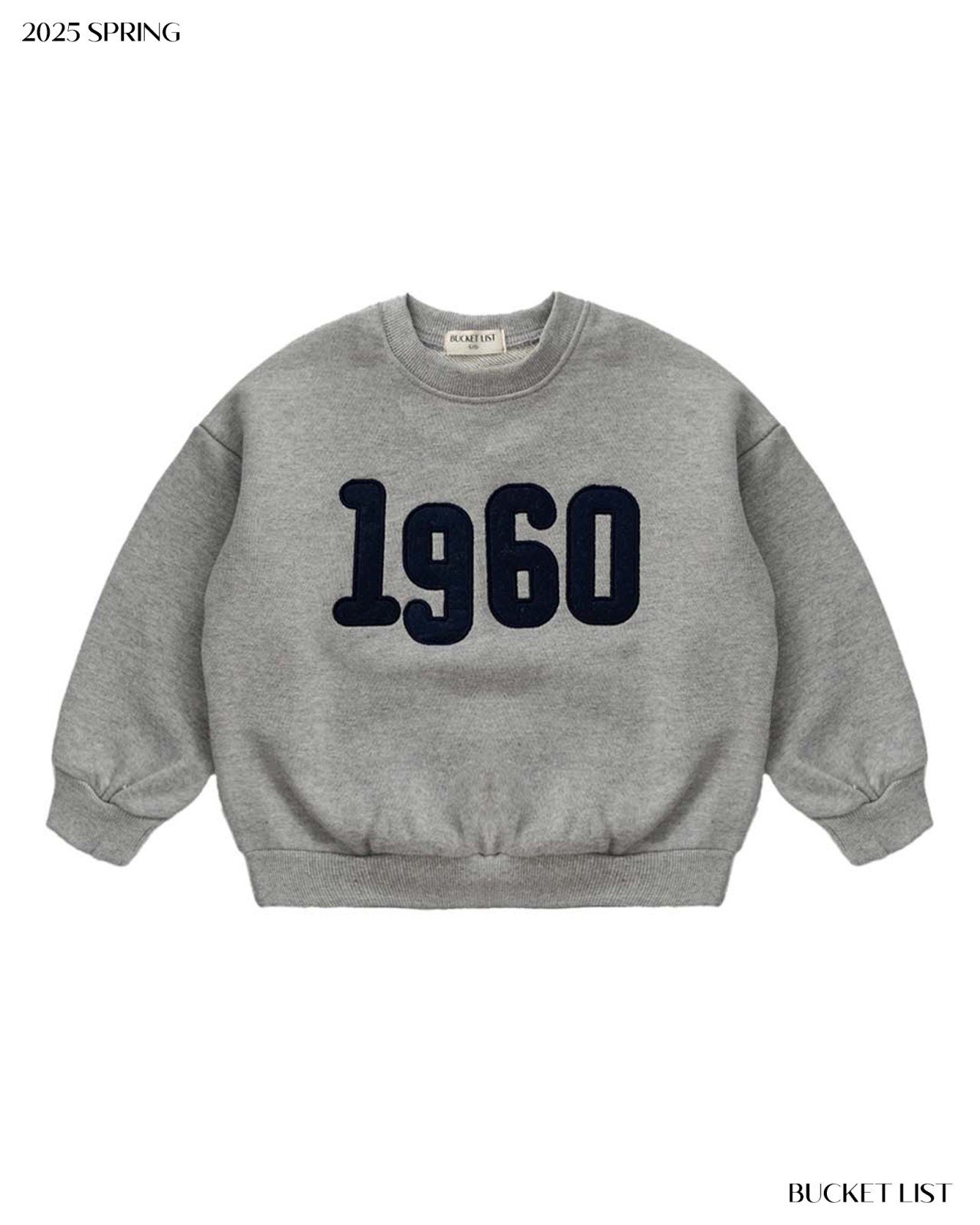 韓國 BUCKET LIST - 美式休閒圓領長袖大學T-1960-灰