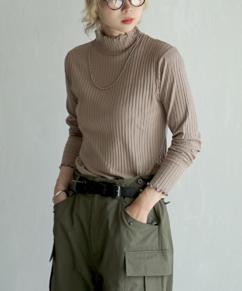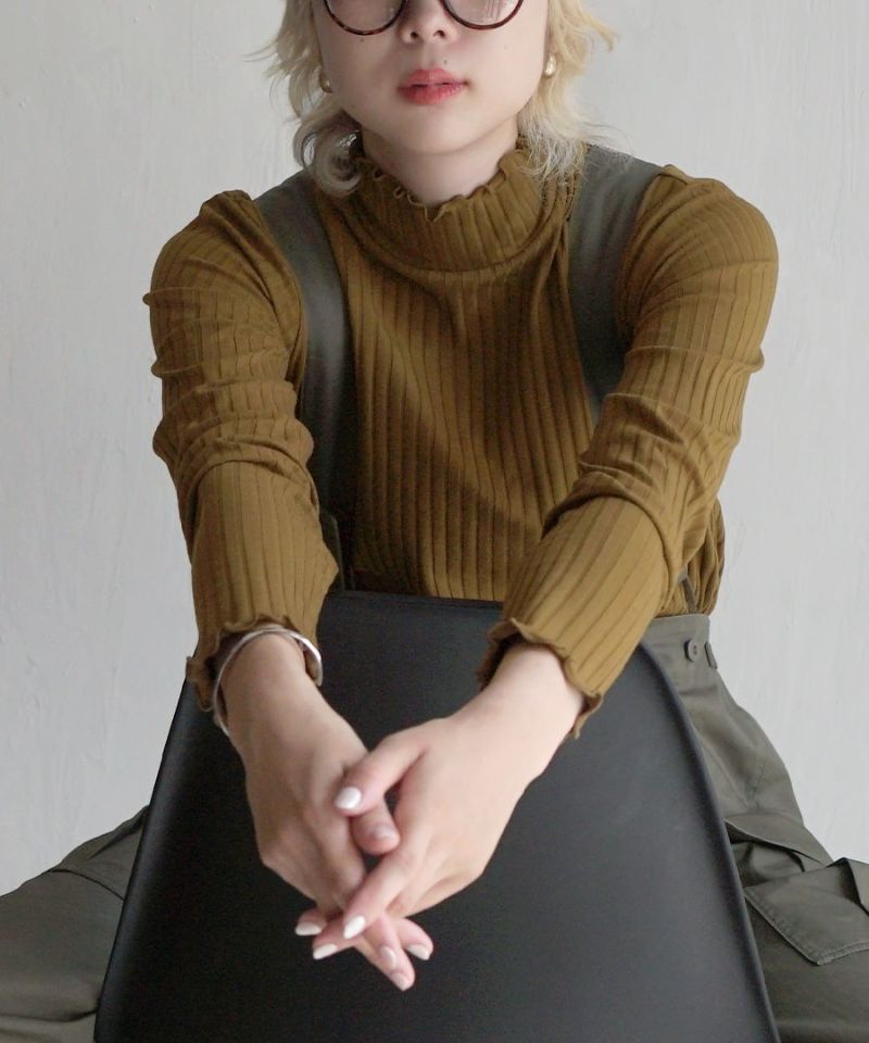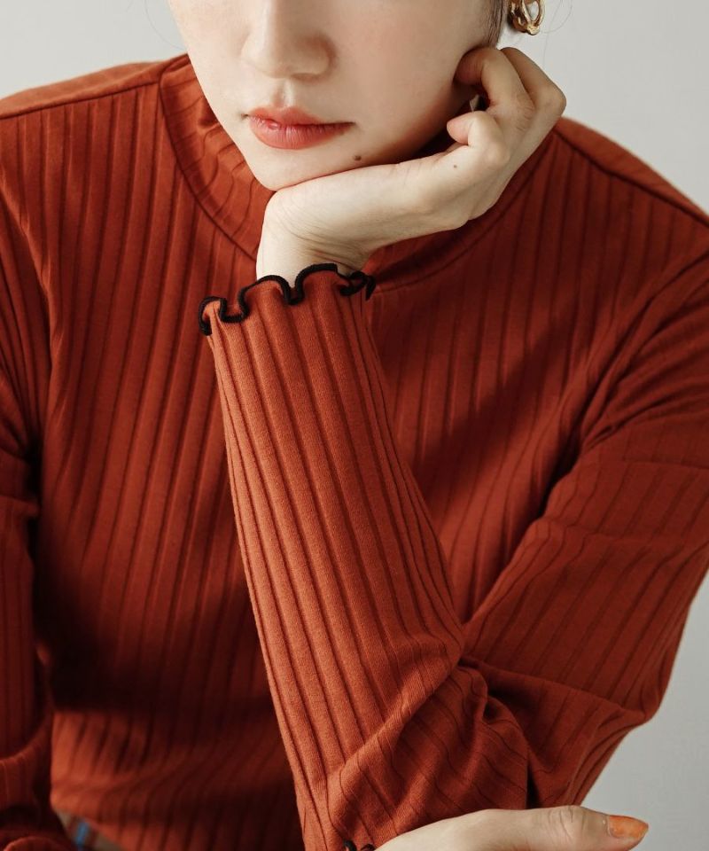 [熱銷]木耳羅紋彈性薄長袖上衣