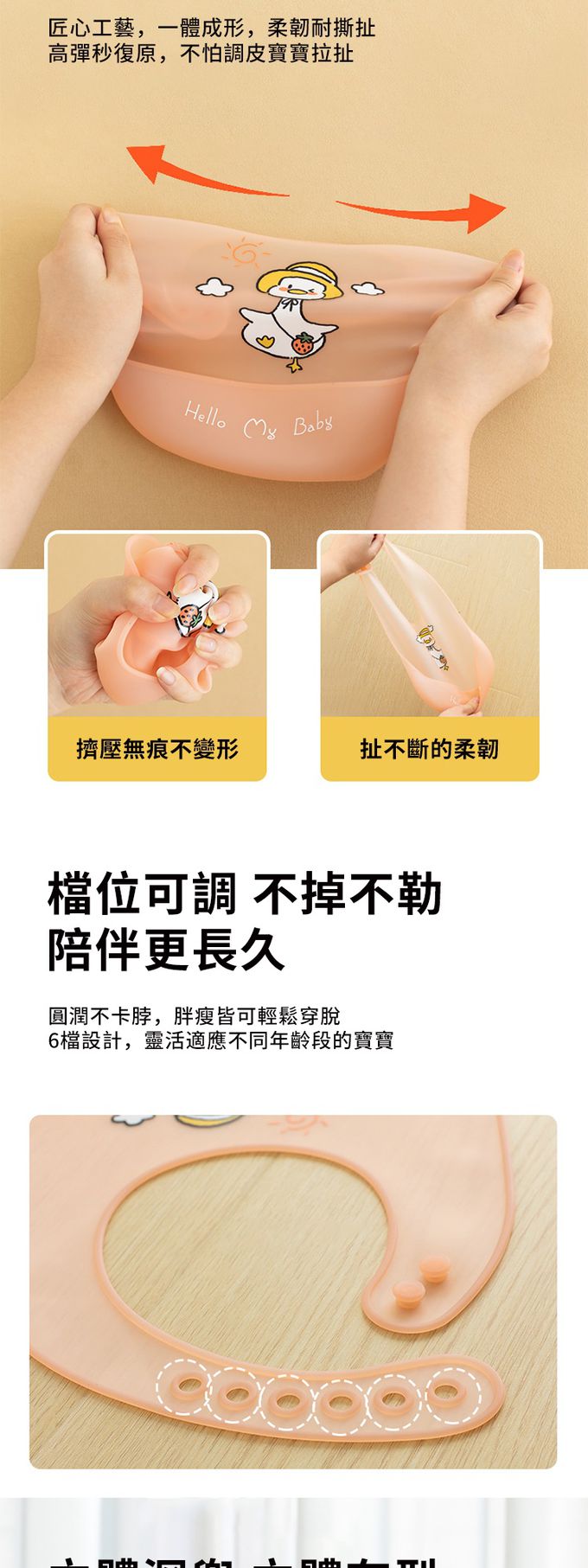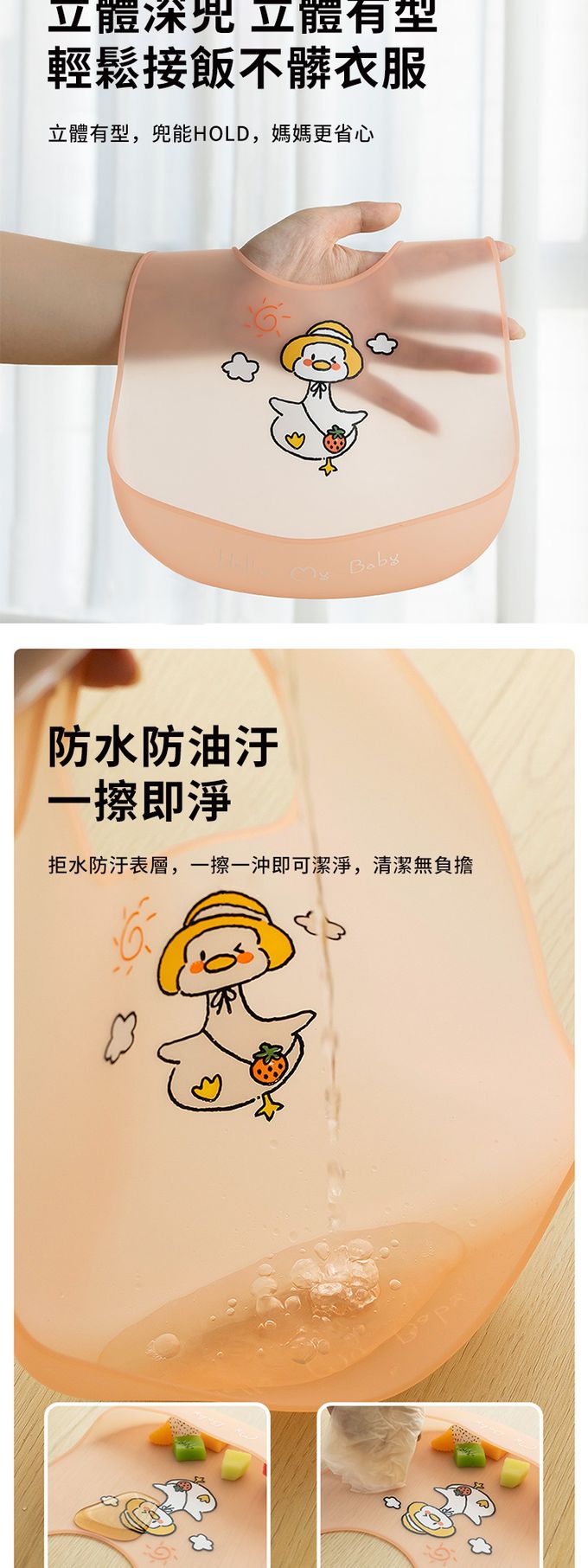 2.6段是可調整圍兜,防水防油,方便清洗