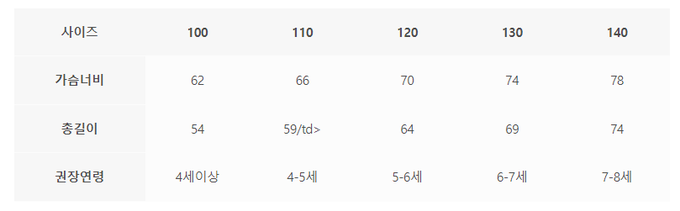 尺寸表由上而下為:尺寸、胸圍、總長、建議年齡