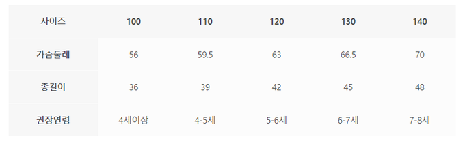尺寸表由上而下為:尺寸、胸圍、總長、建議年齡
