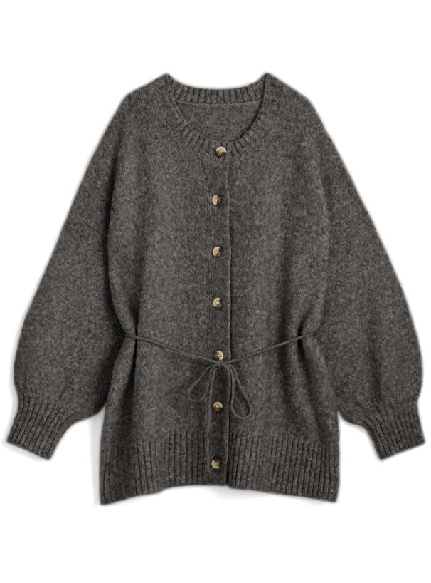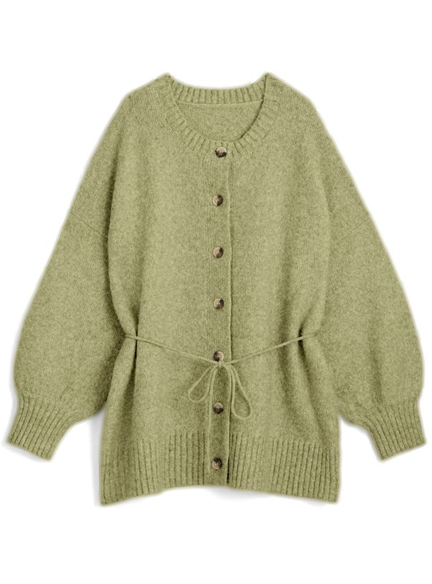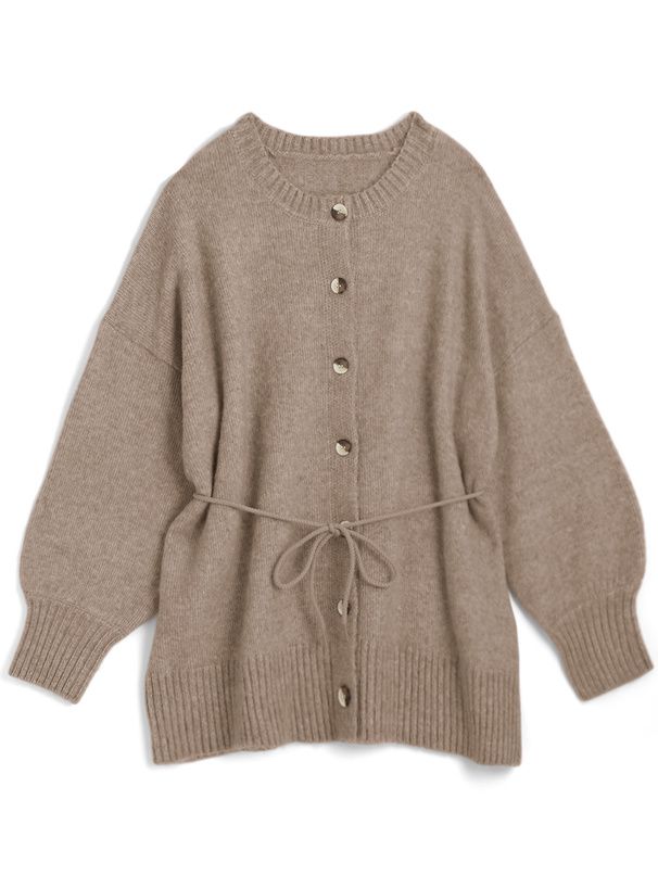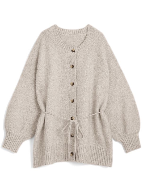 日本 GRL - 甜美柔軟羊毛感長版針織開襟衫-亞麻杏 (F)