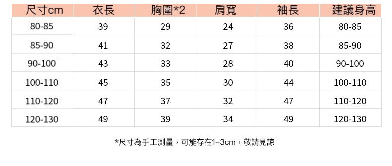 衣服品質是不錯!但給尺寸的方式不ok,看照片可以知道我買三件同jumping meters牌子110-120cm、二件BE TOP牌子120cm,但為何前者jumping meters給的尺寸卻不一樣(即2件5T、1件6T),讓人覺得廠商在給尺寸方式上很不ok!!!