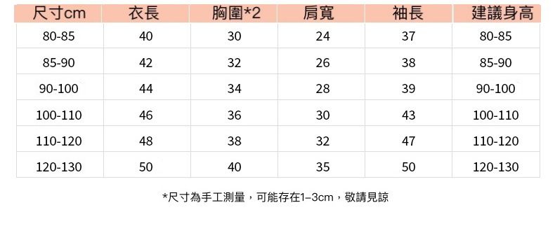 衣服品質是不錯!但給尺寸的方式不ok,看照片可以知道我買三件同jumping meters牌子110-120cm、二件BE TOP牌子120cm,但為何前者jumping meters給的尺寸卻不一樣(即2件5T、1件6T),讓人覺得廠商在給尺寸方式上很不ok!!!