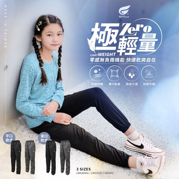 GIAT - 防曬UPF50+極輕速乾運動長褲-童束口款-水墨黑