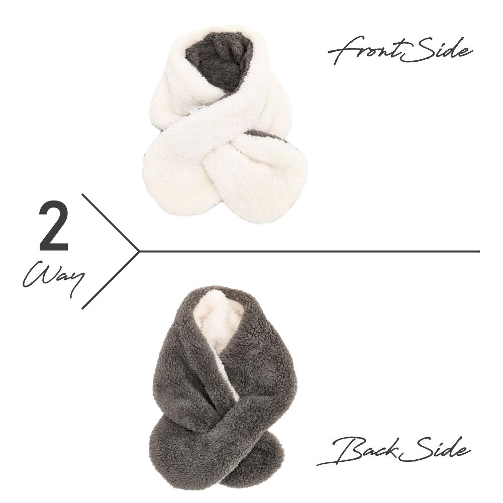 柔軟蓬鬆毛絨,觸感舒適,接觸肌膚不會刺刺的。正反面不同顏色,可以雙面穿戴喔!
