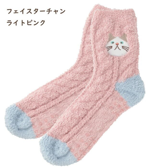 日本 friendshill - 可愛刺繡柔軟針織保暖室內襪-貓咪-粉紅 (22-25cm)