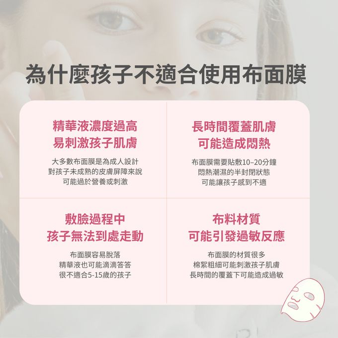 洗滌/清潔建議:每次敷臉時間不超過15分鐘,即可沖洗乾淨再進行後續臉部保養程序