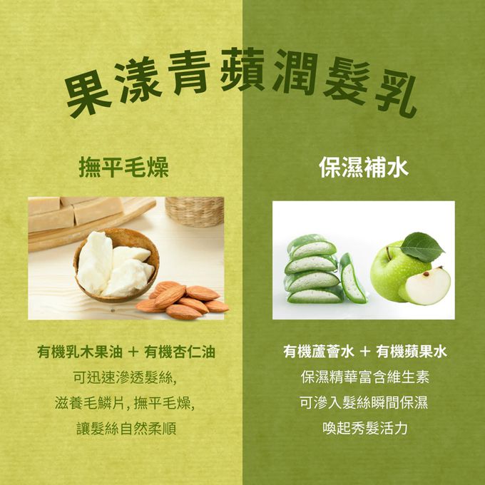 富含蘆薈、青蘋果、甜杏仁等水果精華