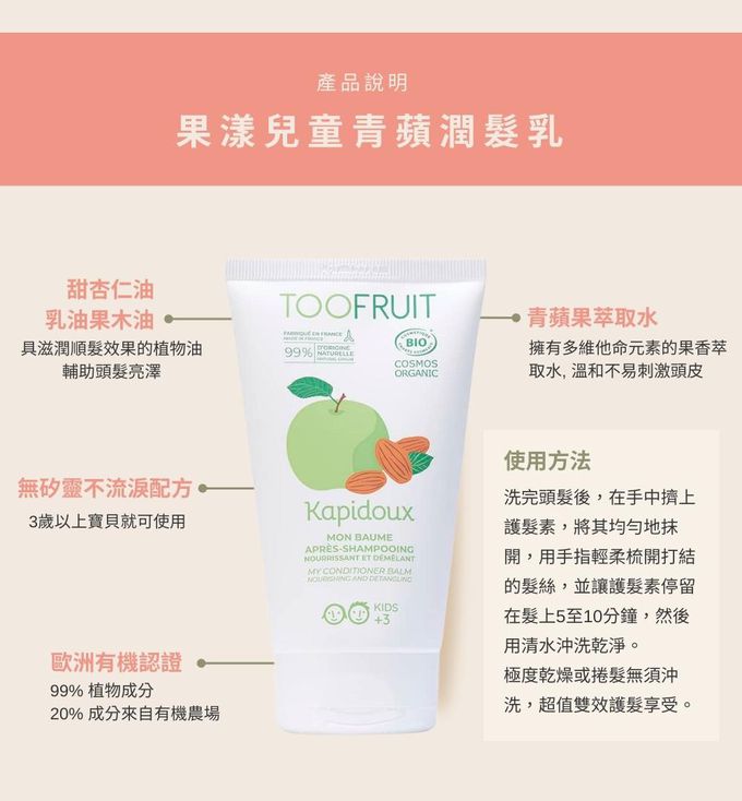 法國 TOOFRUIT - 果漾兒童青蘋潤髮乳-150ml