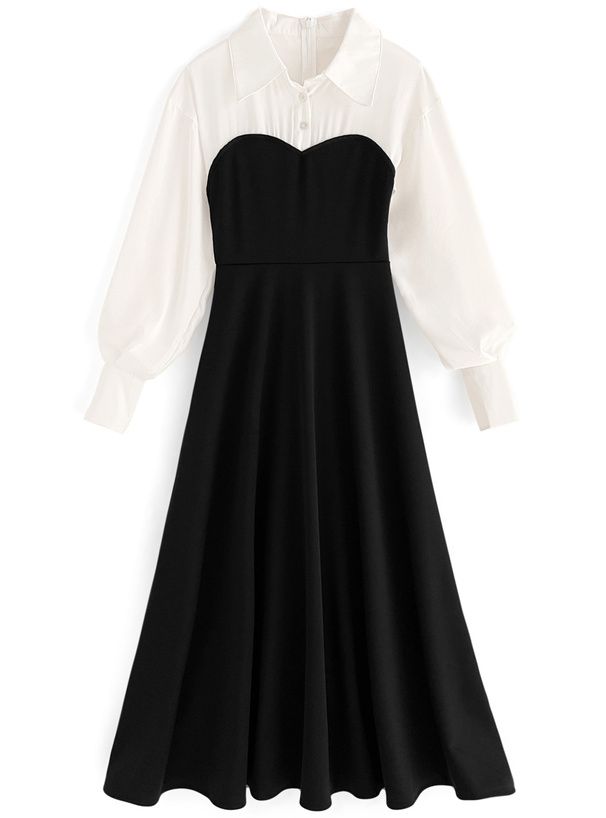 • 品名:氣質桃心領拼接長袖洋裝