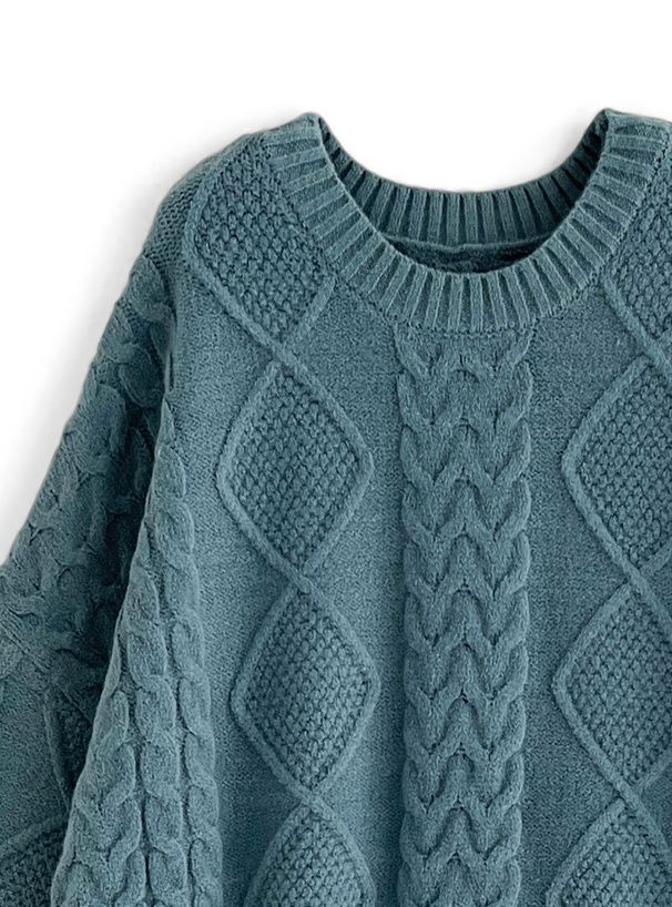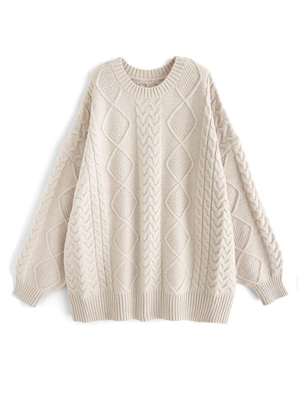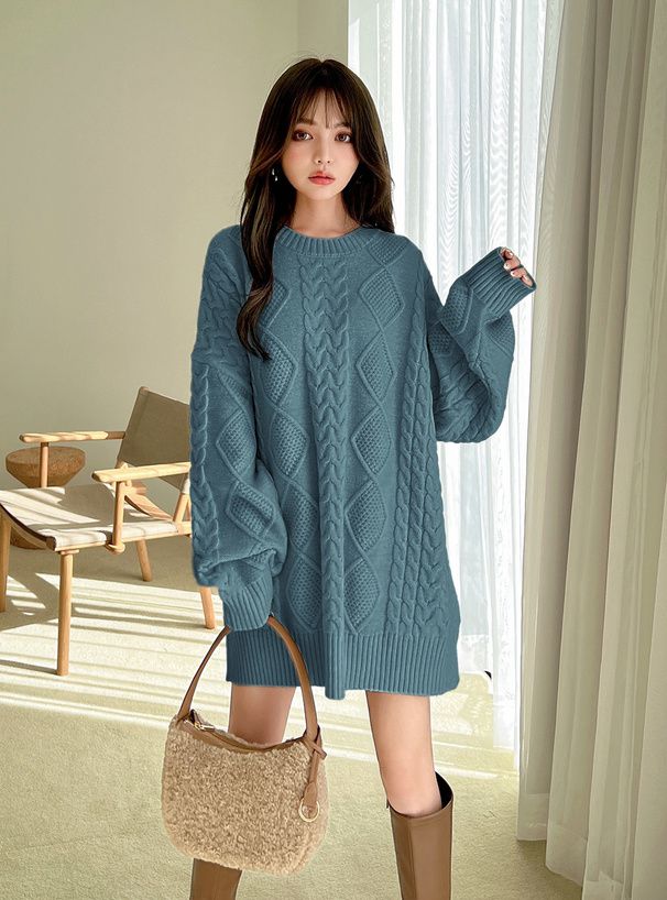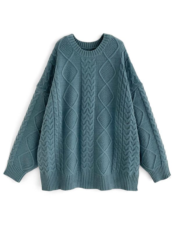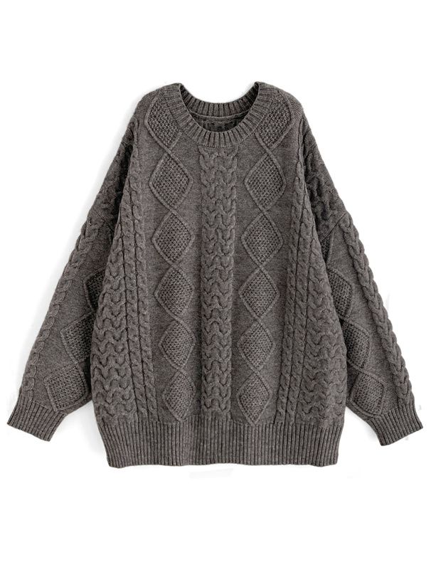 日本 GRL - 慵懶感麻花編織紋長版毛衣-深灰 (F)