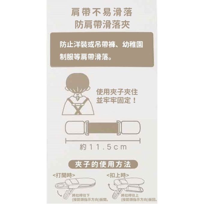 可防止洋裝、吊帶褲、幼稚園制服等肩帶滑落